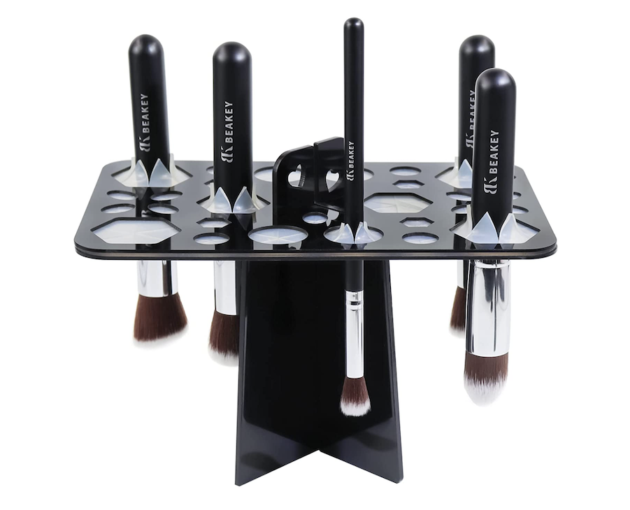So to prevent that from happening to your brushes what you want to do is hang them upside down to dry with a holder like this one